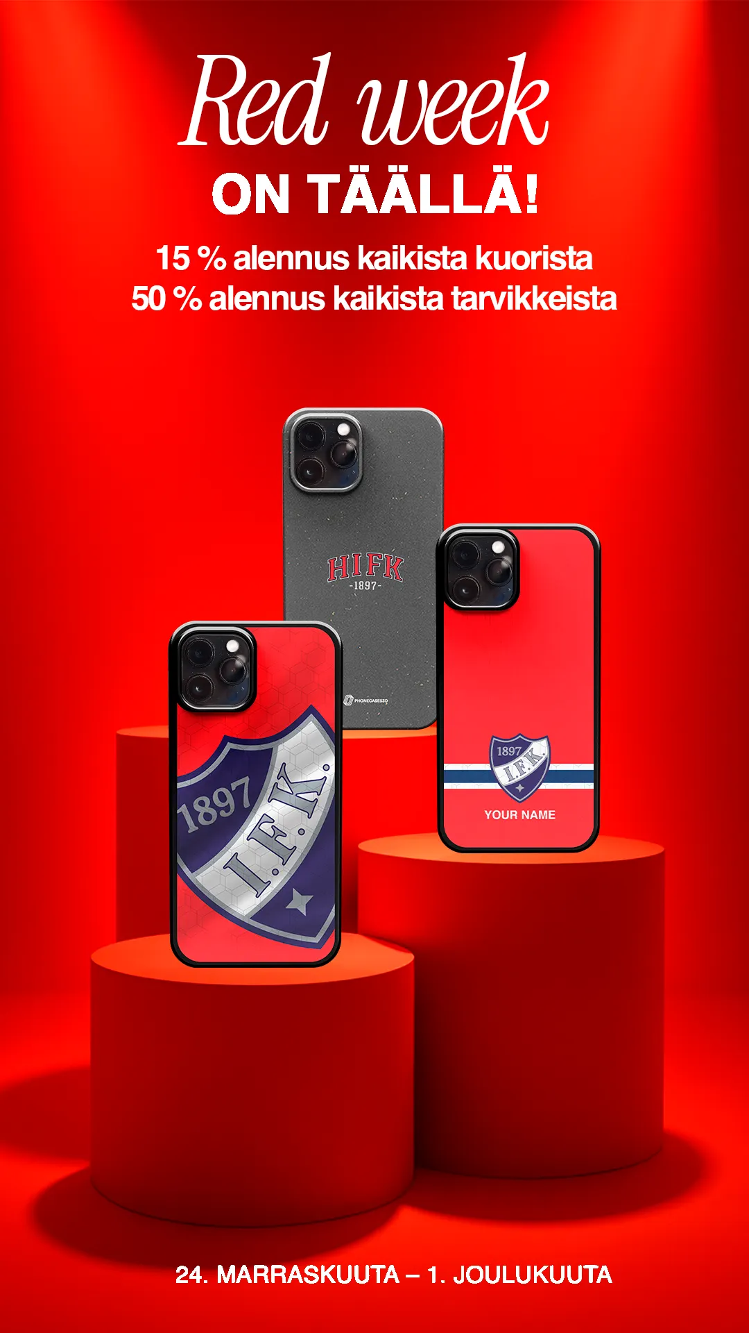 HIFK Shop yhteistyökumppani Phonecases 3D myy ja toimittaa tuotteet suoraan kotiin.